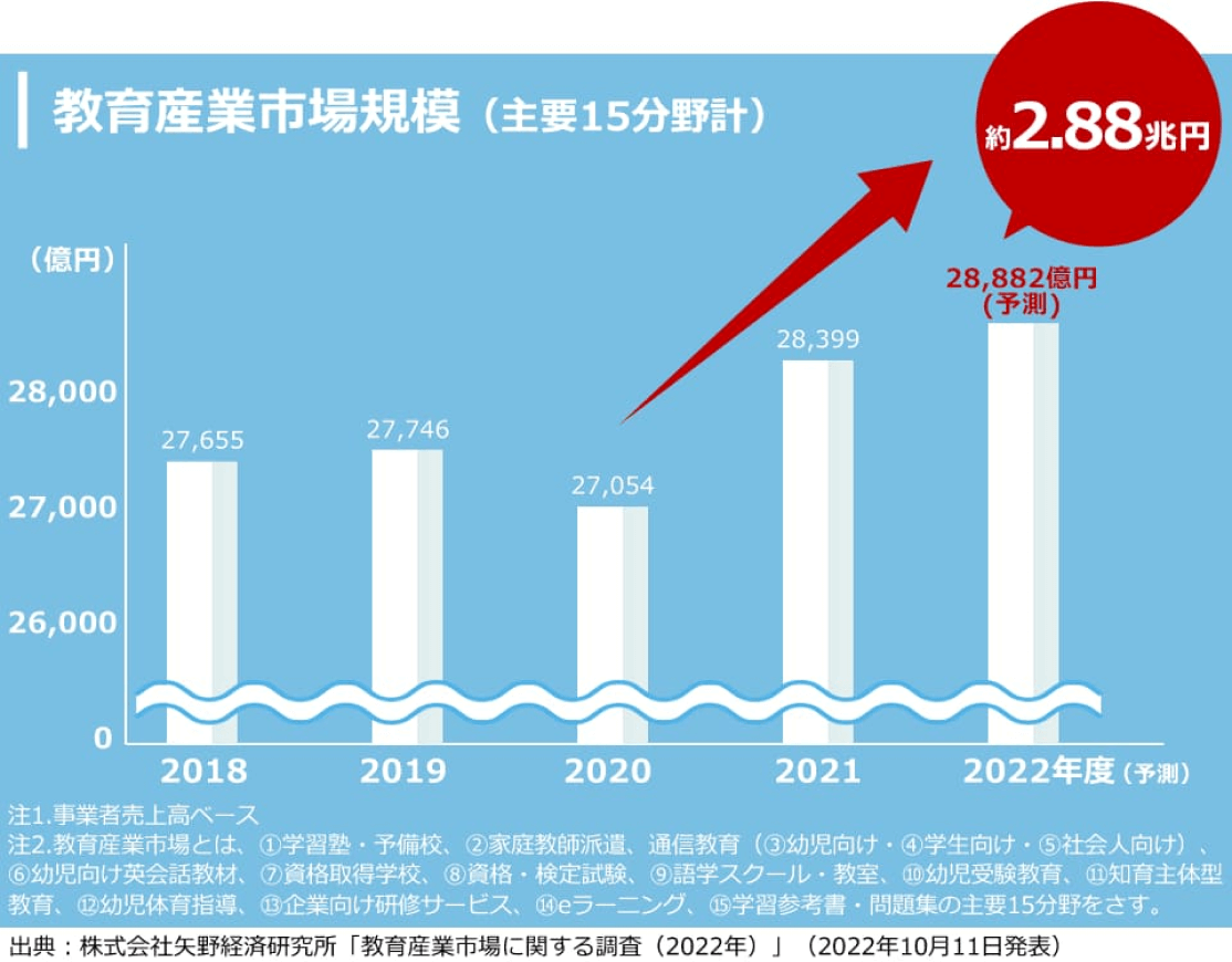 人口減少に伴う国力の低下、景気低迷、AI化の進展による職務領域の消失など、複数の不安要素の中で、我が子が取り残されないよう、しっかりと教育を受けさせたいという親の思いが教育費の増加につながっています。