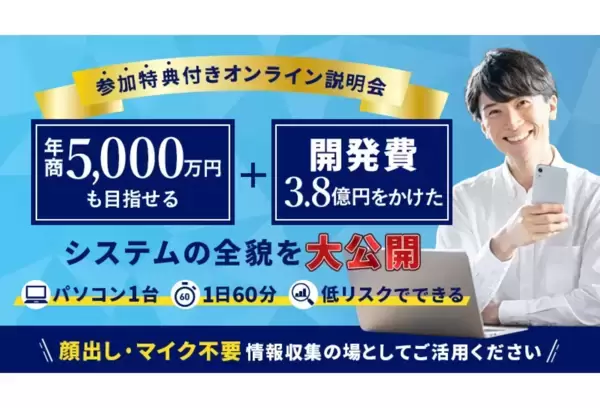 作業のほとんどを自動化し売上を構築するシステムのすごさを、全国どこでも参加できるオンライン合同説明会にてご確認下さい!