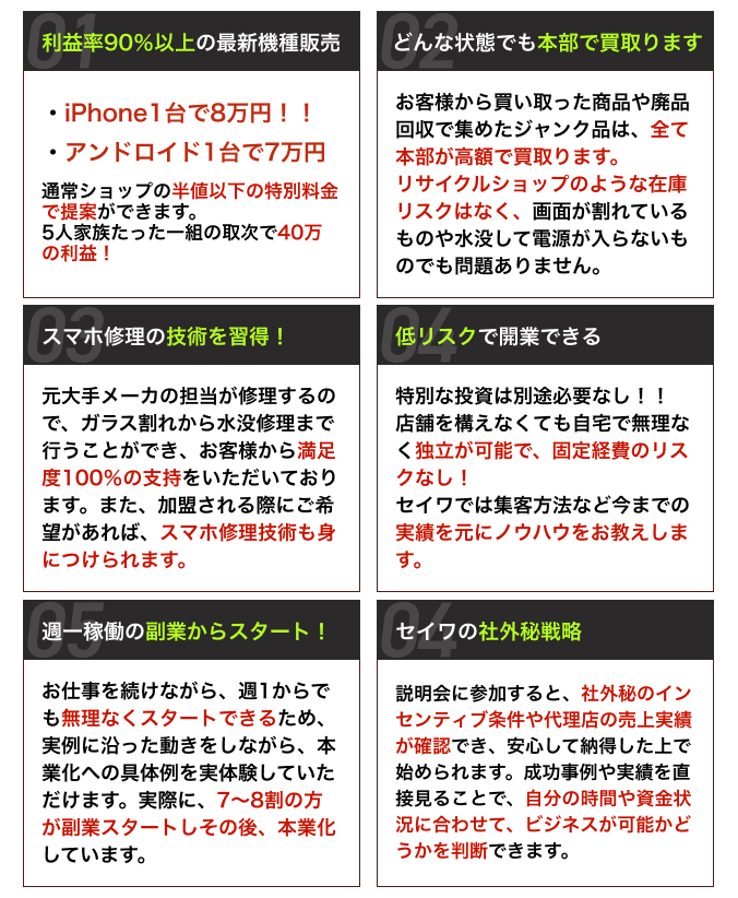 「セイワ」の中古携帯電話買取りシステム